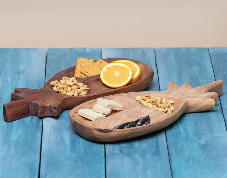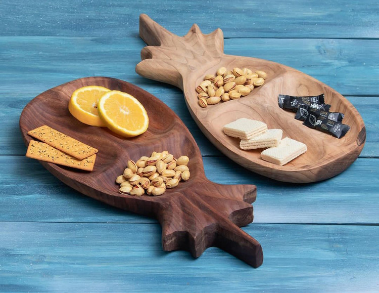 اردو خوری آناناسی مناسب برای سرو غذاهای خشک و تنقلات، ساخته شده از چوب یک تکه و متراکم ملچ (نارون) و گردو به صورت کاملا دست ساز