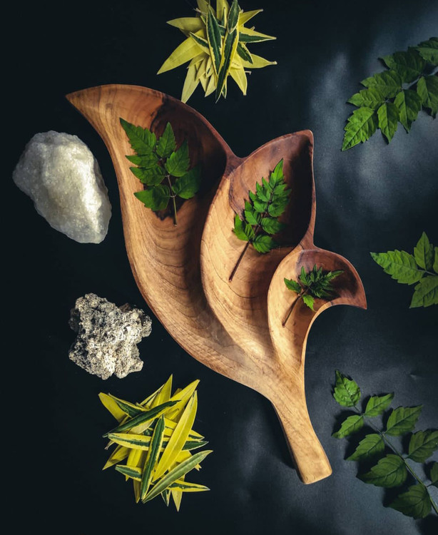 اردو خوری چوبی سه برگ مناسب برای سرو مزه های مختلف، آجیل و تنقلات،ساخته شده از چوب یک تکه و متراکم ملچ (نارون) و گردو به صورت کاملا دست ساز