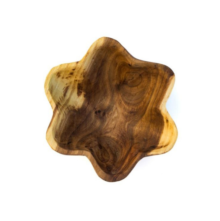 پیاله چوبی ستاره ای، میتواند برای سرو انواع خوراکی مانند آجیل، تنقلات یا خشکبار به صورت تکی و یا شش عدد (یک ست) استفاده کنید.
